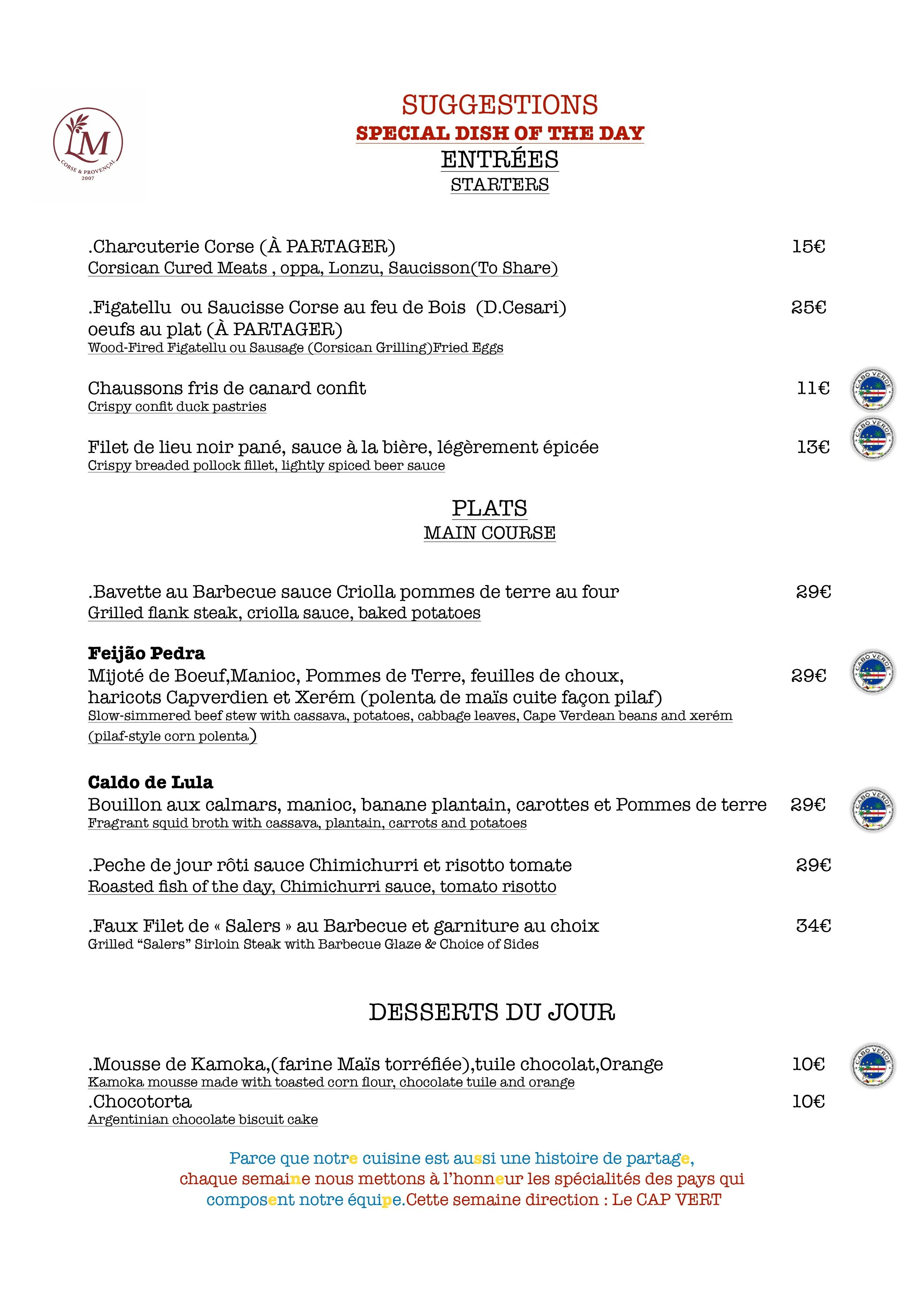 Lundi. jeudi, vendredi et dimanche 12h à 14h - 19h à 22h